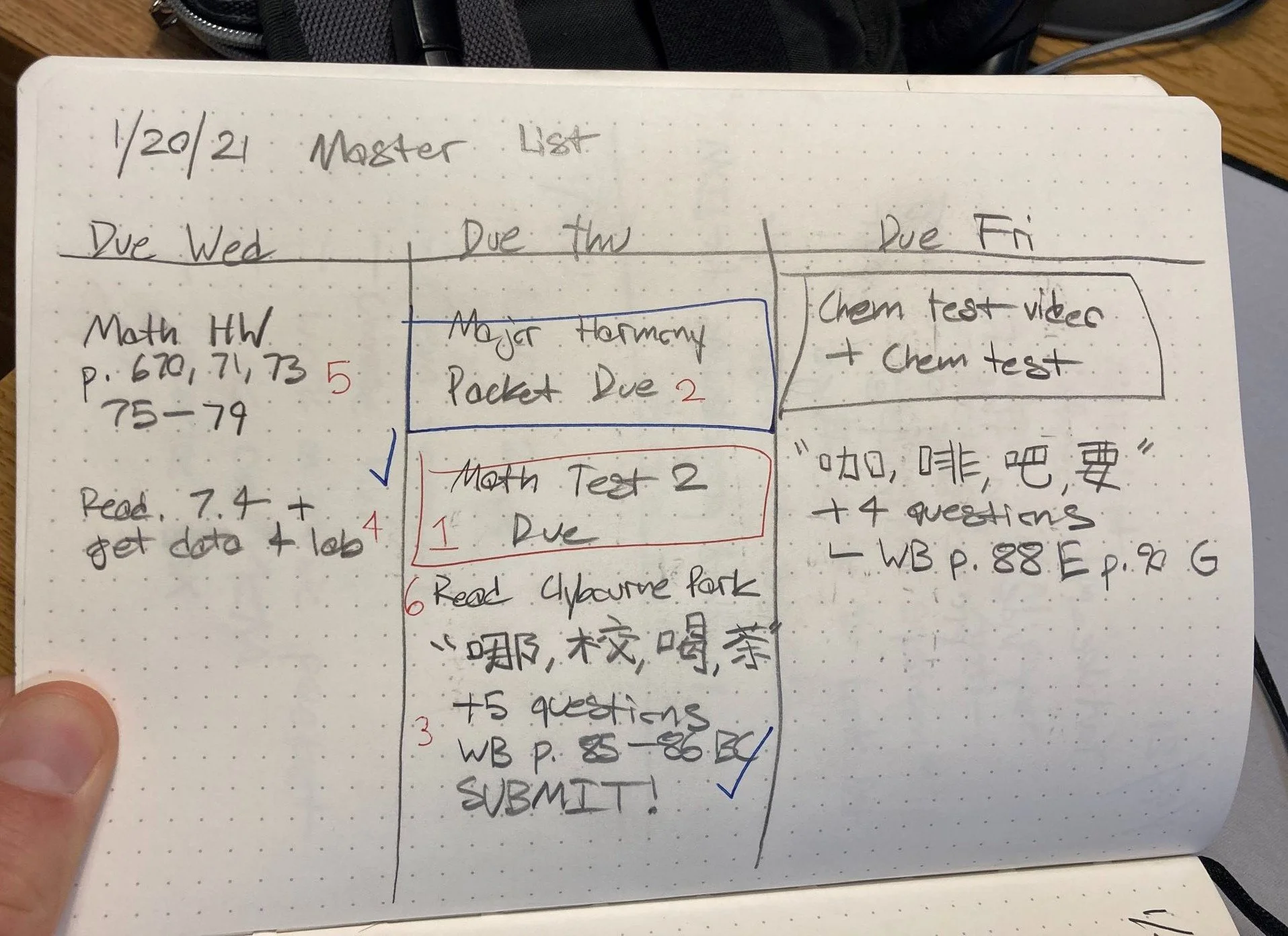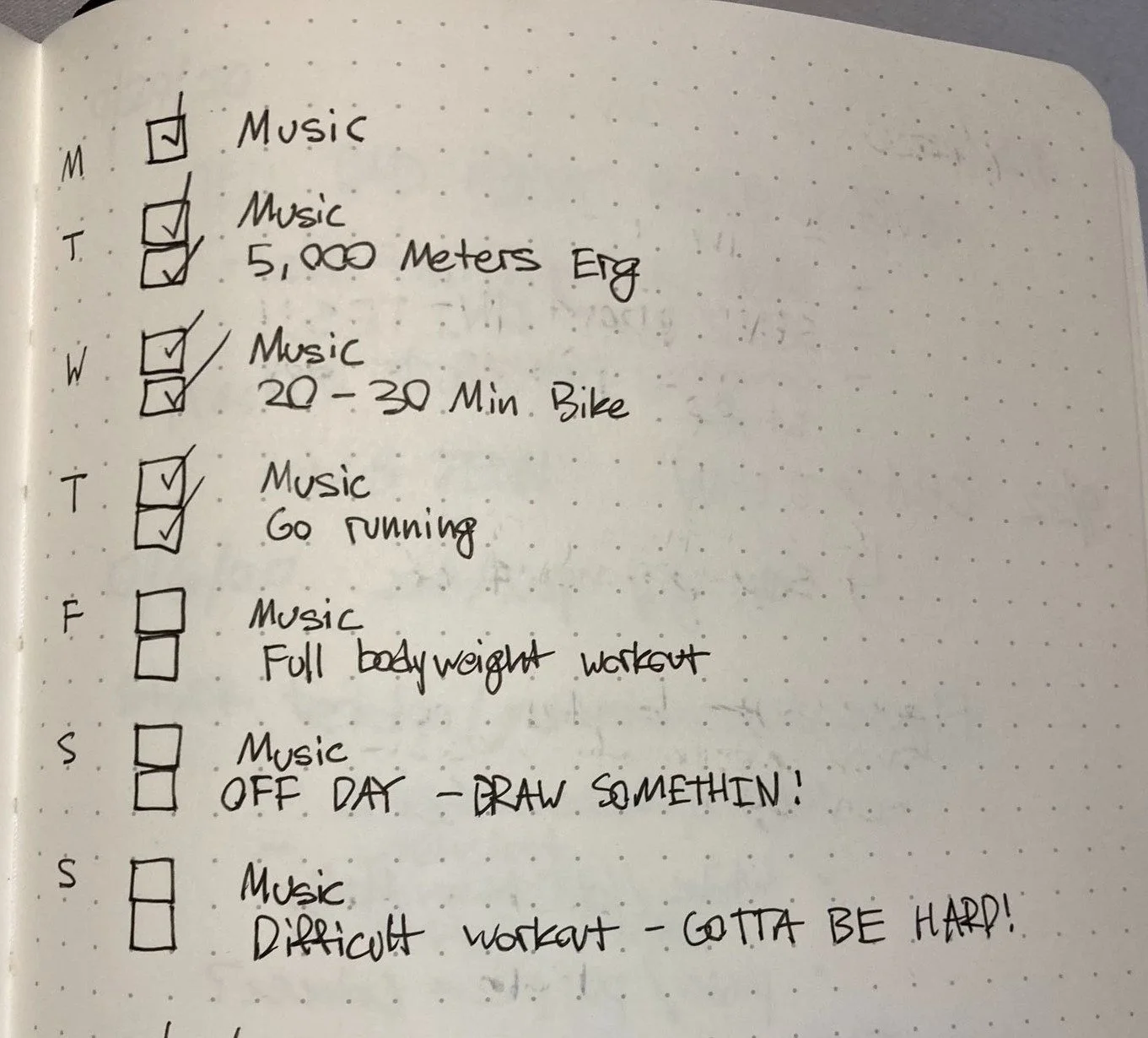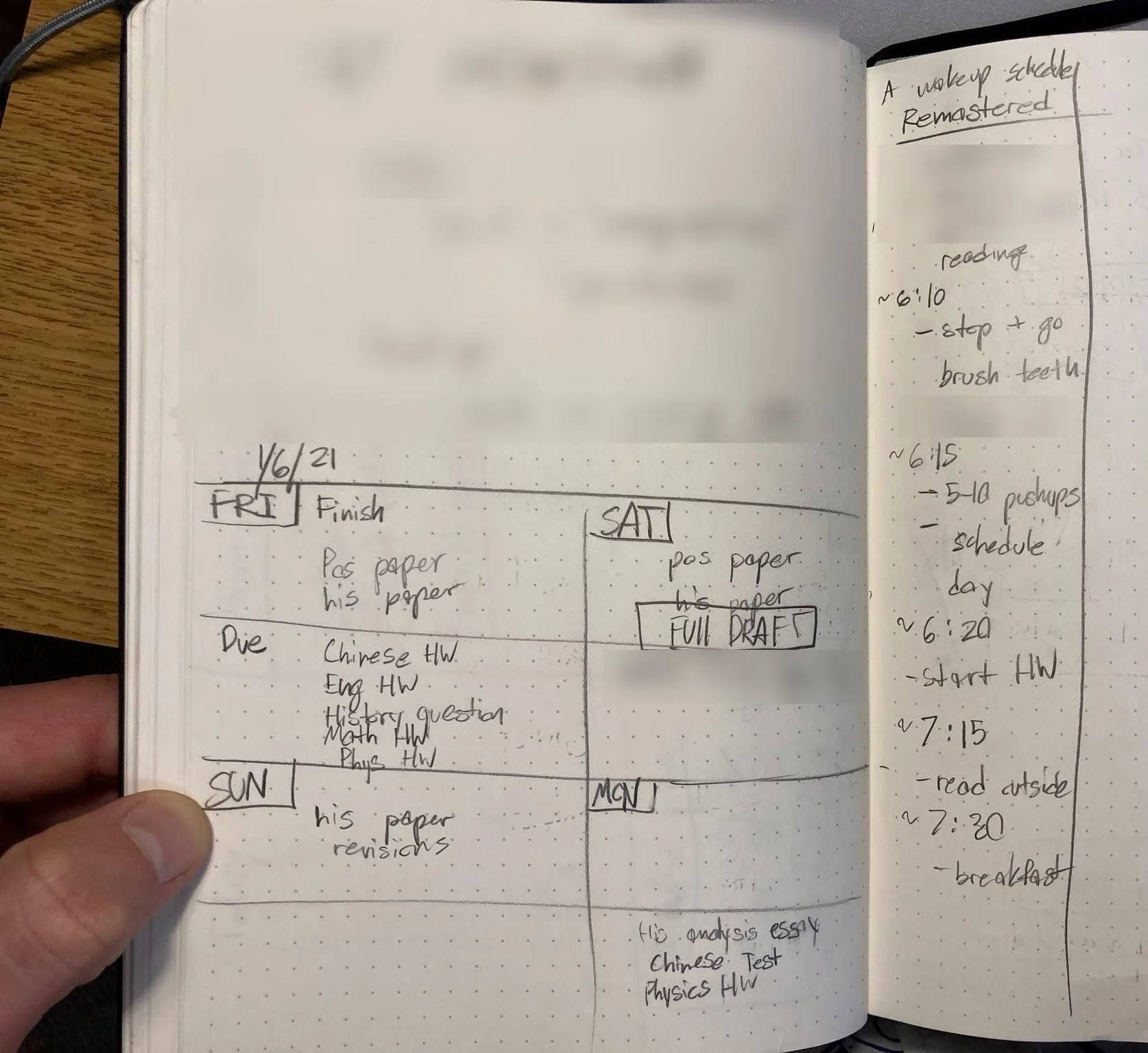 A checkbox system for daily habits over the summer - it was pretty satisfying to make sure I got everything done, and I used a nice pen (and wrote it pretty neatly). However, I don’t think I ever followed through with it as only half of the boxes are checked.