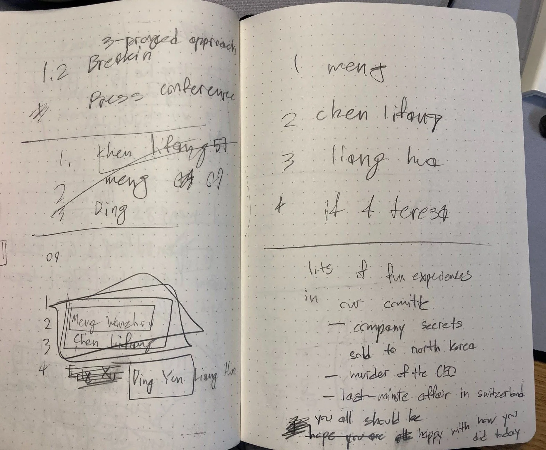 These are the notes from when I was running a model UN conference (probably the most messy these will get). The bottom right here has a quick draft of a thank-you speech for everyone who took part.